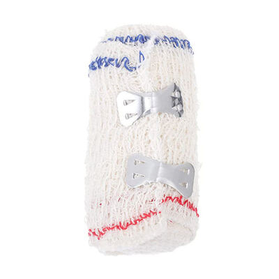 Position the bandage: Start by holding the end of the cotton bandage against the skin near the wound. If necessary, use a small piece of tape or a safety pin to secure the initial end of the bandage in place.